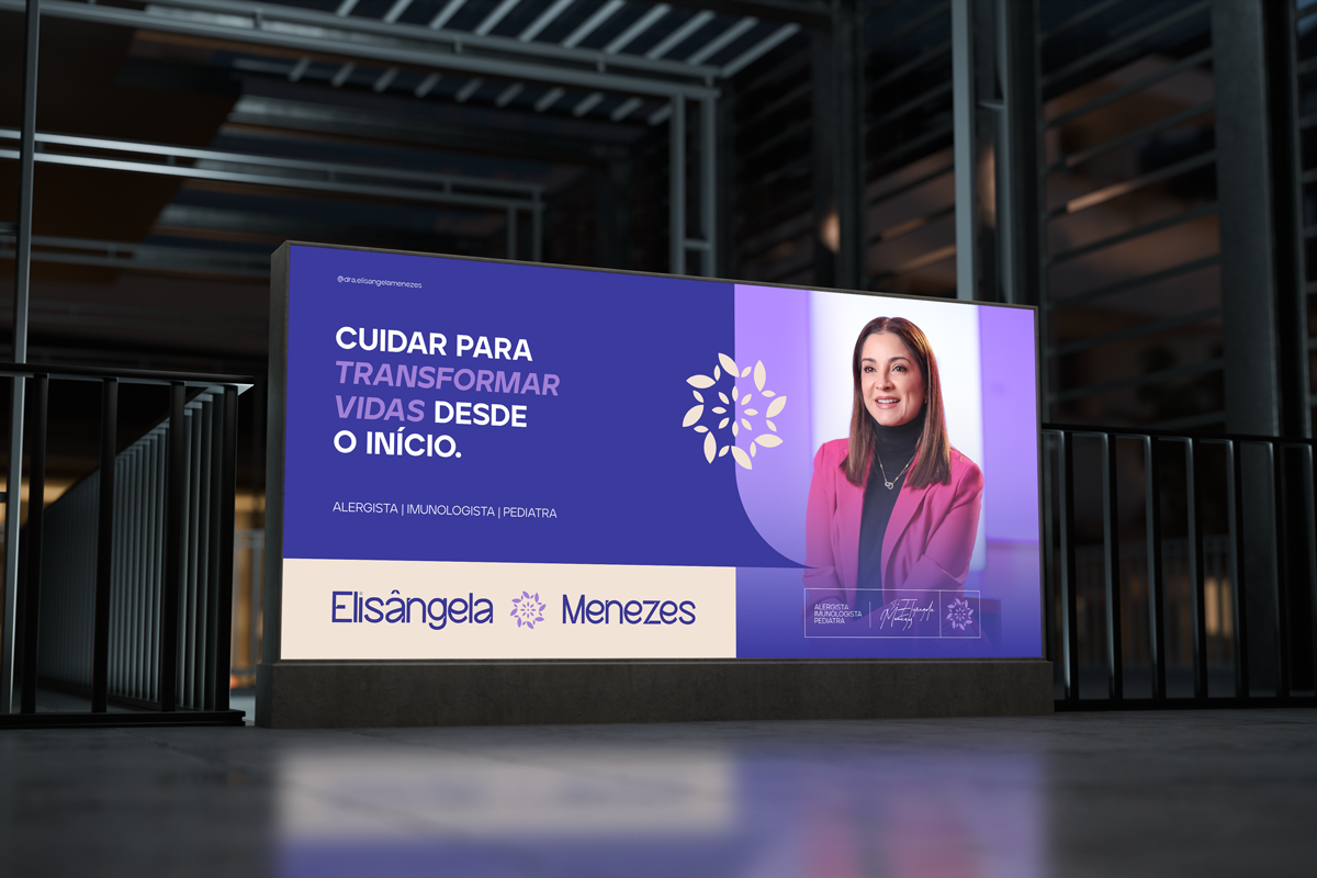 Já havíamos criado a logo da Dra. Elisângela e, em 2025, realizamos o redesign completo da marca. A nova identidade visual reflete sua evolução profissional, com sofisticação, clareza e propósito. A tipografia moderna transmite elegância, enquanto o icônico dente-de-leão foi ressignificado em uma espiral de cuidado e proteção. A paleta em tons de roxo e rosa reforça autoridade com sensibilidade. Um reposicionamento que vai além da estética, comunica valores e fortalece vínculos com o público.